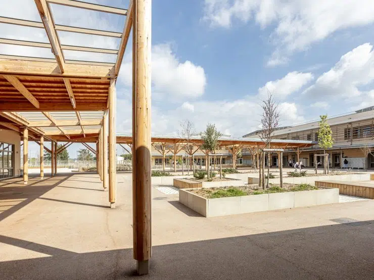 Matériaux biosourcés, sobriété, respect de la biodiversité, énergie positive, promotion et création de circuits courts… Autant d’atouts qui caractérisent les projets de collèges, de lycées, de cités et groupes scolaires conçus par notre agence ces dernières années en faveur d’une pédagogie active et innovante.