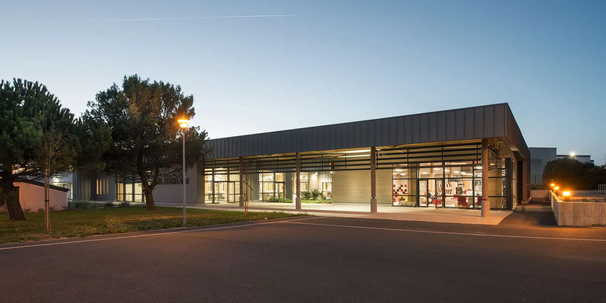 L’école des Douanes comprend la construction en neuf de 4 bâtiments, celui de la direction, la résidence IV de logements, la plateforme technique de simulation et exercices, la restauration et la cuisine centrale. Le projet comporte également la réhabilitation du bâtiment enseignement et l’amphithéâtre. Enfin, le restaurant et le bâtiment direction existant ont été démolis.