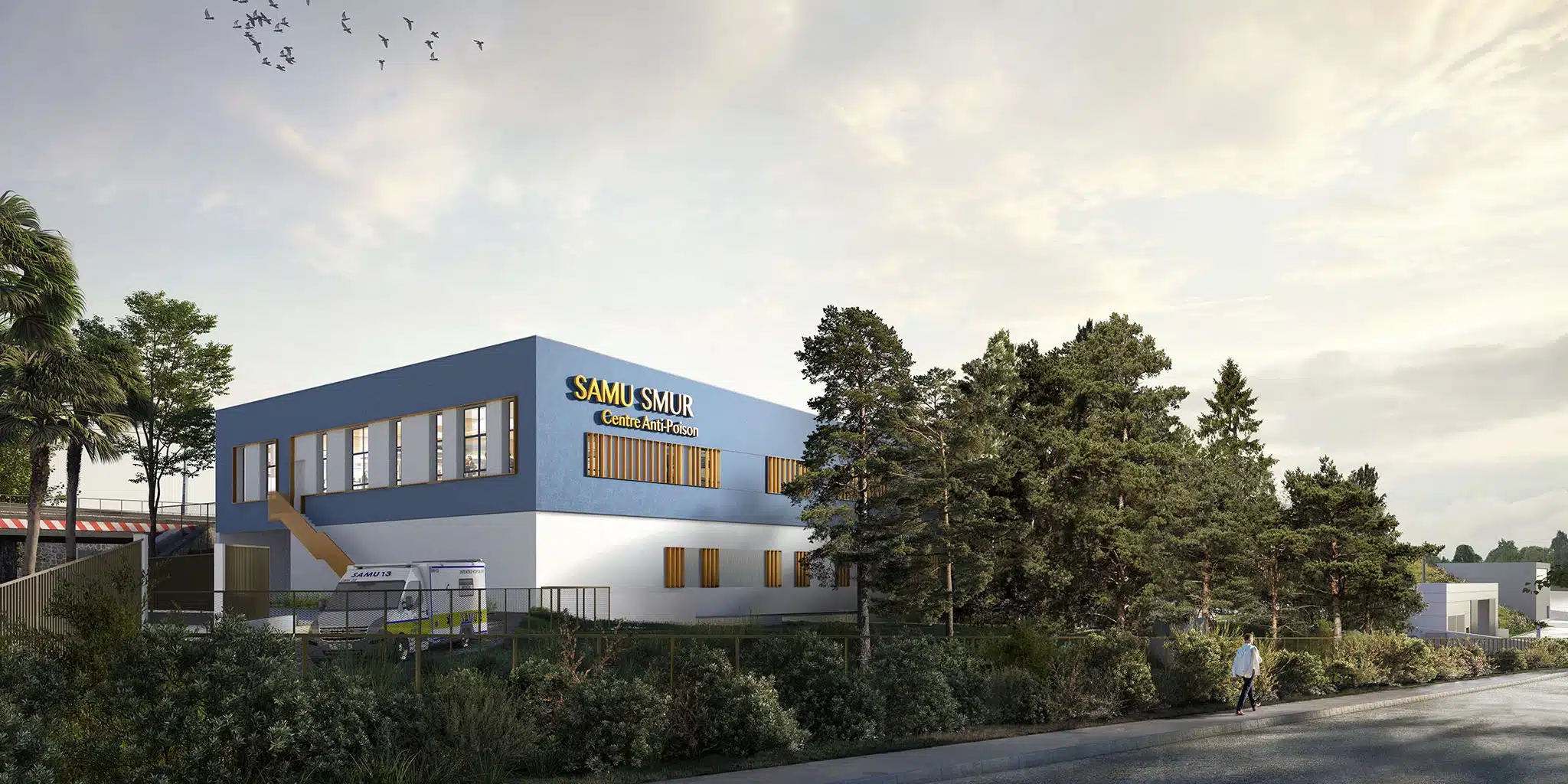 Le niveau 1 comprend le secteur d’interventions / SMUR avec un garage tempéré (14 ambulances, 2 VRM, 4 VL) et les locaux communs du personnel.